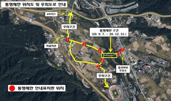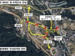 이와 관련, 교량 재가설 완료에 따라 기존 노후교량 및 도로 철거, 도로구조개선(종단구배 조정)을 위한 순성토 반입, 접속도로 공사를 위한 작업장비 공간 확보를 위하여 부득이하게 2020년 9월 7일부터 작업차량을 제외한 전 차량을 공사 종료(2020. 12월 예정)시까지 전면통제하게 되었다고 밝혔다.