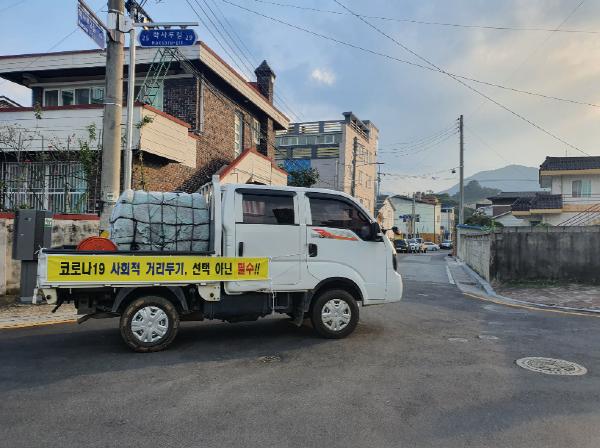 함양군에서는 전읍면 279개의 마을앰프방송과 차량가두 방송, 이장회의 및 읍면 78개 지정게시대를 통하여 사회적 거리두기 준수를 홍보하고 있다.