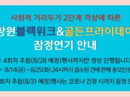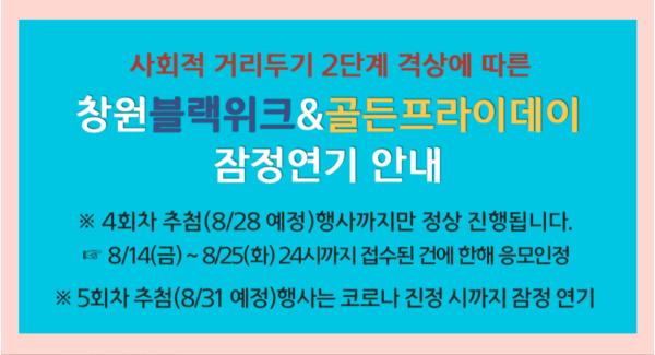 이는 코로나19 재확산으로 인해 사회적 거리두기가 2단계로 격상됨에 따른 조치로 코로나 진정 시까지 관련 행사가 잠정 중단된다.