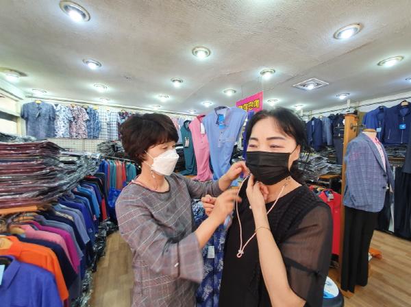 이런 가운데 마스크 분실방지 목걸이를 받아든 주민들의 반응이 좋다. 옷가게를 하는 이모씨는 “가끔 마스크를 집에 두고 외출해 당황하기도 하고 식사나 차를 마실 때 마스크를 둘 곳이 여의치 않아 손에 쥐고 있기도 한다”며 “마스크 목걸이가 유용하게 잘 쓰일 것 같다”고 말했다.