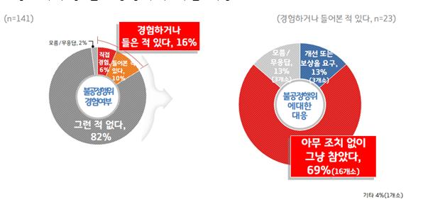 조사결과 복합쇼핑몰로부터 불공정 거래행위를 경험하거나 들어본 적이 있냐는 질문에는 16%인 23곳이 그렇다고 답했다.