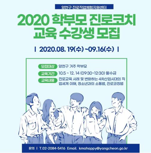이에 양천구는 학부모들에게 청소년들의 진로탐색을 위한 지지체계로서의 역할 을 부여하기 위해 지난 2016년부터 관내 거주 학부모를 대상으로 ‘학부모 진로코 치 교육 프로그램‘을 개설해 올해로 7번째 교육생을 모집한다.