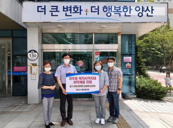 양산시 해오름교회(목사 김건석)는 지난 25일 코로나19 사태로 인해 어려움을 겪고 있는 양주동 관내 복지사각지대 취약계층을 위해 150만원을 지원했다.