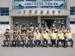 전남 구례군(군수 김수호)은 지난 7일과 8일 막대한 호우피해를 입은 구례 지역의 응급복구를 마치고 복귀하는 군 장병들을 25일 구례공설운동장에서 환송했다고 밝혔다.