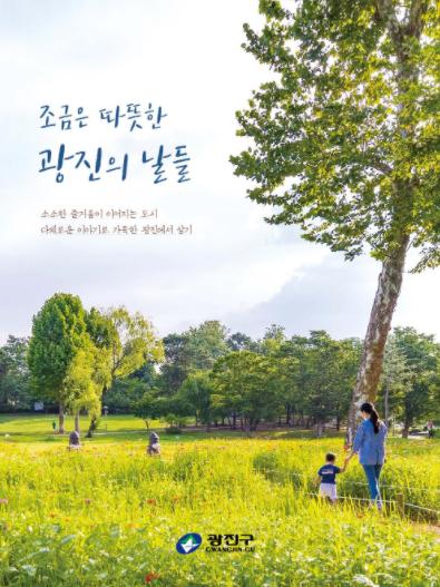 구는 ‘소소한 즐거움이 이어지는 도시, 다채로운 이야기로 가득한 광진에서 살기’를 소제목으로 정하고 주민 생활과 밀접한 다양한 콘텐츠를 수록했다. 감성적인 사진과 이미지를 활용해 가독성과 몰입도를 높인 것이 특징이다.