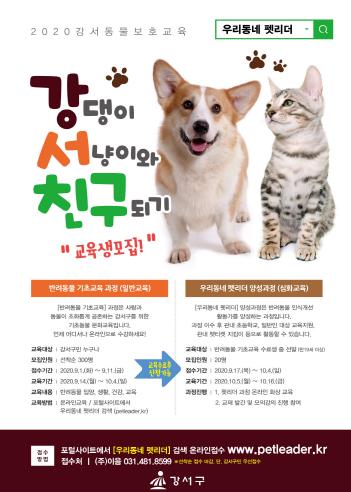 서울 강서구(구청장 노현송)는 반려동물의 이해를 돕는 동물보호교육 ‘강댕이&서냥이와 친구되기’를 실시한다고 밝혔다.