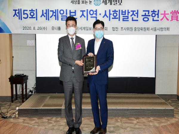 강동구(구청장 이정훈)가 제5회 지역사회발전 공헌대상을 수상했다. 시상식은 신종 코로나바이러스 감염증(코로나19)로 인해 26일 기관별 3명만 참석한 가운데 진행됐다.