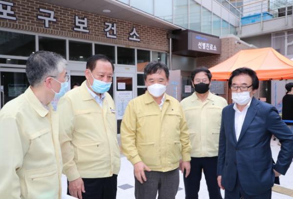 지난 8월 26일(수) 오후, 유동균 마포구청장이 서정협 서울시장 권한대행과 함께 마포구보건소 선별진료소, 월드컵대교 건설현장 등을 방문해 태풍 바비에 따른 피해 대비 안전점검에 나섰다.