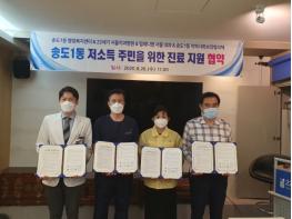 송도1동 행정복지센터(동장 김도연)?송도1동 지역사회보장협의체(민간위원장 이회만)는 지난 26일 지역 내 22세기 서울치과병원(대표 박성원), 밀레니엄 서울내과(대표 김민성)와 저소득계층의 의료복지 향상을 위한 업무협약을 체결했다.
