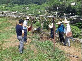 고성군(군수 백두현)은 8월 25일 동해면 참다래 과수원을 대상으로 농촌진흥청 고객지원담당관실 정동완 팀장 외 5명을 초빙해 참다래 재배상 문제점을 해결하기 위한 현장기술 지원을 실시해 적극 행정을 추진하고 있다.