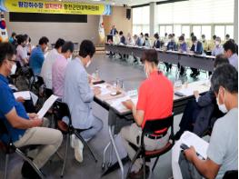 ▲ 한국수자원공사는 우수기 방류 시 황강하류가 위험하다는 지난 3월 합천군민의 진정에도 낡은 매뉴얼을 고수하여 합천군에 막대한 수해를 입힌 것에 책임 인정과 피해액 전액을 보상하라.