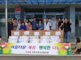 27일 구이면에 따르면 지역사회보장협의체는 최근 관내 독거노인, 장애인 등 취약계층 30여 가구에 여름용 이불세트와 선풍기 등 200만원 상당의 여름나기 물품을 전달했다.