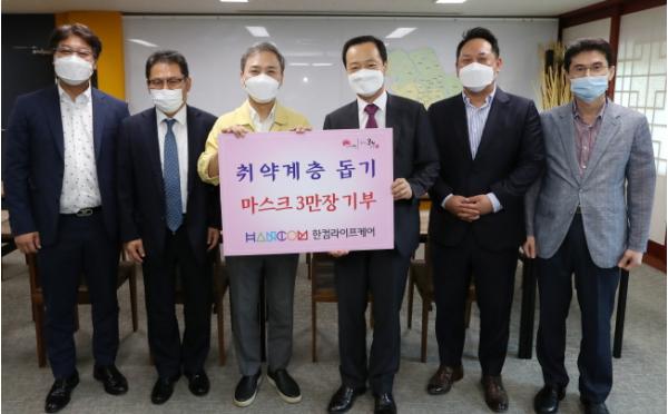 이날 전달된 마스크는 ㈜한컴라이프케어가 식약처 인증을 받아 생산한 KF94 인증 마스크로, 전주지역 장애인과 노숙인 시설, 노숙인 등 취약계층에게 배부될 예정이다.