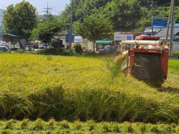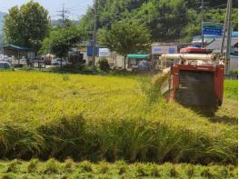 이번에 수확한 벼는 조생종 고시히카리로 지난 4월 18일 의령읍 동동리 288번지 등 5필지에 0.5ha에 모내기를 실시 한 후 129일만 인 8월25일 첫 수확을 시작으로 본격적인 벼 수확을 할 예정이다.