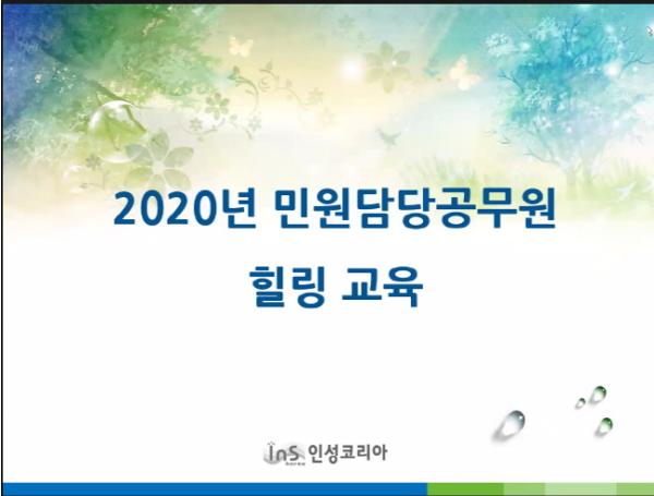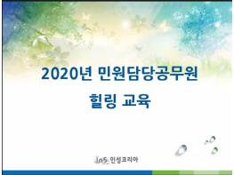 이번 교육은 코로나19로 인하여 종전의 단체집합 교육 방식 대신 자택에서 온라인 실시간 화상프로그램으로 접속하여 교육에 참여하는 방식으로 진행됐으며, 고객접점의 현장에서 악성민원 응대 및 감정노동으로 지친 공무원들의 몸과 마음을 치유하고 감정관리력을 강화하기 위해 마련됐다.