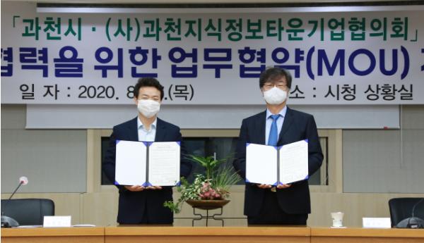 김종천 과천시장은 27일 시청 대강당에서 (사)과천지식정보타운 입주기업협의회(대표회장 엄주범)와 과천시의 미래성장동력 창출 및 자족도시 실현을 위한 상생협력 업무협약을 체결하였다.