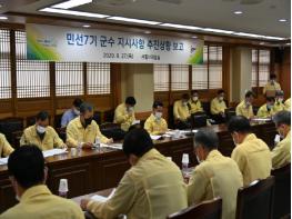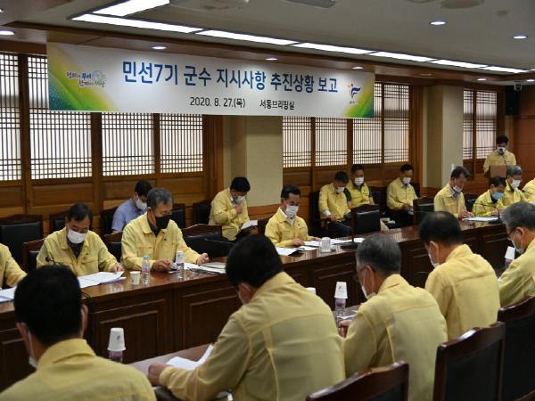 부여군(군수 박정현)은 27일 군청 서동브리핑실에서 민선7기 군수 지시사항 추진상황 보고회를 개최하고 각 부서에서 추진하고 있는 군수 지시사항과 현안에 대한 추진상황을 점검했다.
