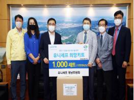 기탁 물품은 필터교체형 마스크 1만2000개와 유니세프 희망키트 1000세트이다.