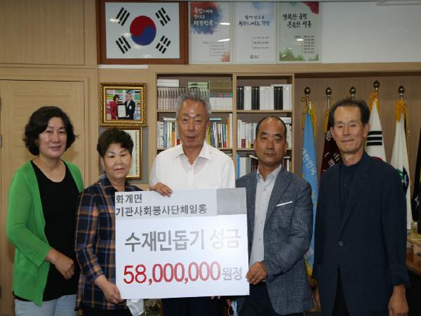 재부화개향우회(회장 이종팔)와 재통영하동향우회(회장 조채환)도 수해복구 현장의 접수창구를 통해 성금 1025만원과 200만원씩을 각각 기탁했다.
