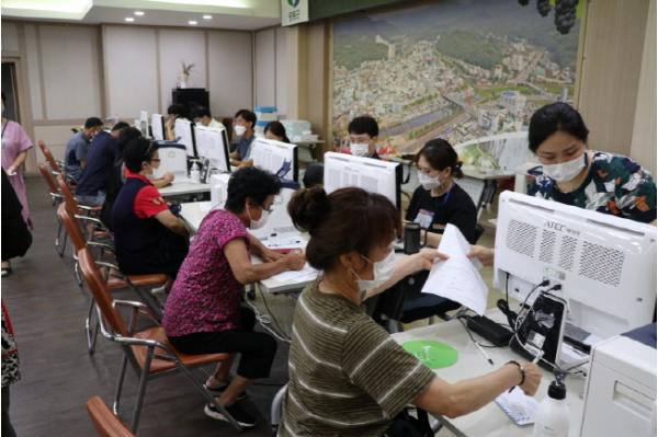 영동군청 홈페이지를 통한 온라인 신청과 각 읍·면사무소를 통해 오프라인 신청을 병행하고 있으며, 각 읍면사무소에서는 담당공무원과 안내요원이 거리두기를 준수하면서 군민들의 재난지원금 신청을 돕고 있다.