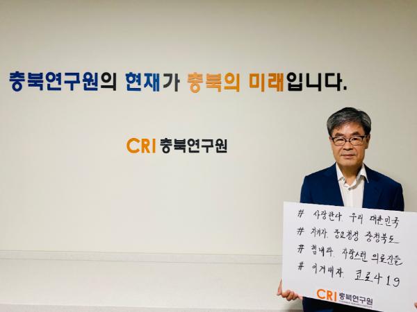 충북연구원(CRI) 정초시 원장이 코로나19 위기 극복을 기원하는 릴레이 캠페인에 동참했다.