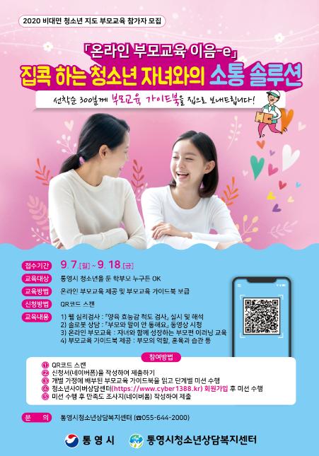 통영시청소년상담복지센터는 ‘집콕하는 청소년 자녀와의 소통솔루션’을 주제로 비대면 청소년지도 부모교육을 실시한다.