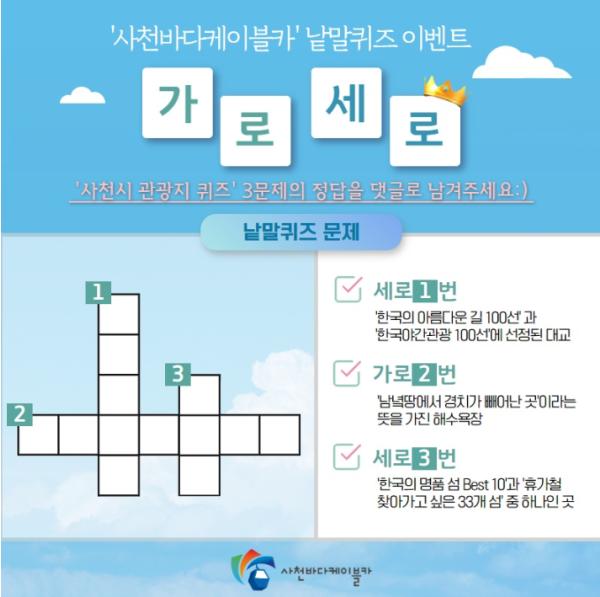 위 이벤트에 대한 자세한 사항은 이벤트 시작 당일 사천시시설관리공단-사천바다케이블카 공식 SNS를 통해 확인 가능하다.