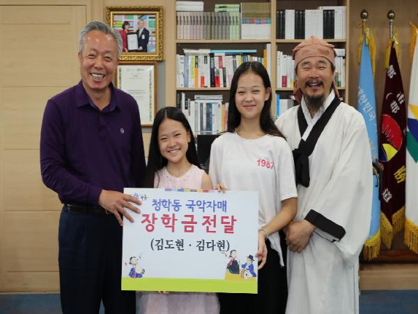 윤상기 군수는 장학금을 지급하면서 “청학동 트롯신동 다현양과 도현 국악자매가 음악으로 크게 성장하길 바라며, 아버지 김봉곤 훈장처럼 늘 고향 하동과 청학동을 사랑해 달라”고 하였다.