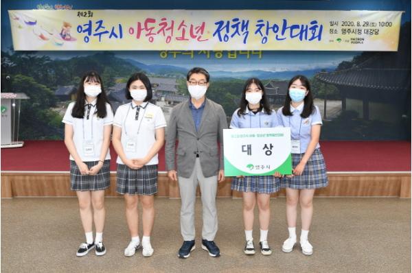 대상은 「미소」팀(영광여자고등학교 김수현 외 3명)이 제안한 “야, 우리도 할 수 있어!”로 영주시에서 개최되는 축제나 행사의 운영, 기획에 직접 참여할 수 있는 청소년 문화행사 위원회 구성에 대한 내용을 다루었다.