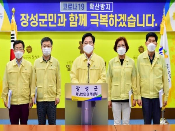 유두석 장성군수는 29일 오후 담화문 발표를 통해 “안타까운 소식을 전하게 되어 송구하다”면서 “추가로 확인된 결과에 따라 신속한 조치를 취할 예정이며, 군민 여러분께서 불안해하시지 않도록 코로나19 발생과 관련된 모든 정보를 투명하고 신속하게 공개할 것”이라고 밝혔다.