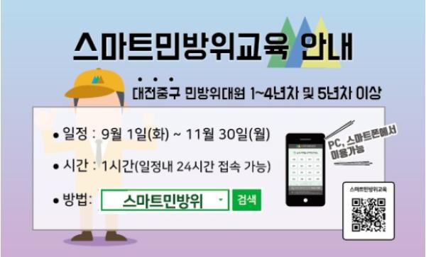 대전 중구(구청장 박용갑)는 코로나19 확산 방지를 위해 2020년도 민방위교육을 비대면 교육으로 진행한다.