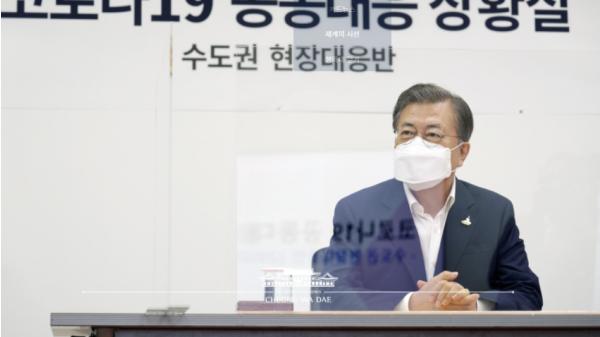 문재인 대통령은 28일 코로나19 수도권 확산에 따른 병상 확보 및 생활치료센터 확대 방안 등을 점검하기 위해 서울 국립중앙의료원을 찾았다.