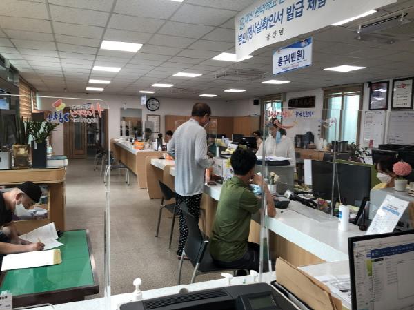 이는 민원인과 직접적으로 대면하는 업무가 많은 면사무소의 업무 특성상 마스크와 손 소독제뿐만 아니라 투명 가림막을 설치함으로써 방역에 최선을 다하고자 하는 선제적인 조치이다.
