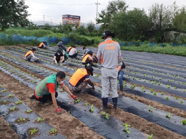 본 행사는 겨울철 불우이웃돕기 김장 행사에 사용할 배추를 마련하기 위한 행사로 무더운 날씨에도 불구하고 코로나19확산 방지를 위해 마스크 착용 및 소독, 거리두기 등 방역수칙을 철저히 준수하며 진행됐다.
