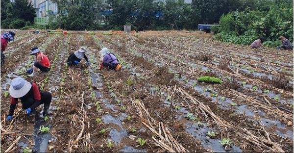 이날 행사에서 칠원읍새마을부녀회 회원들은 칠원읍 야촌 밭에 배추묘종 4,000여 포기를 심으며 구슬땀을 흘렸다.