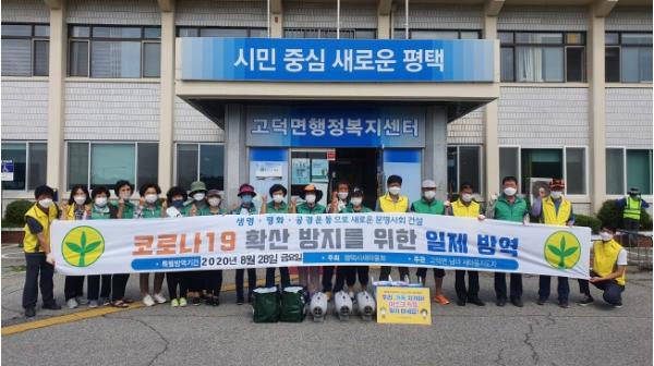윤민원 고덕면장은 “무더운 날씨에도 코로나19 재확산 방지를 위해 자발적으로 생활 방역 봉사를 해주시는 새마을남녀지도자회원들께 감사의 인사를 전하고, 코로나19 재확산 방지를 위해 최선을 다하겠다”고 말했다.