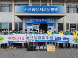 평택시(시장 정장선) 고덕면 새마을남녀지도자회(회장 김원립, 부녀회장 박영남)는 지난 28일, 무더위 속에서 코로나19 재확산 방지를 위한 방역활동 및 마스크 나눔 캠페인을 실시했다.