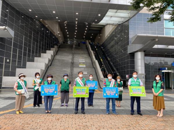 평택시(시장 정장선) 원평동 새마을부녀회는 지난 28일 코로나19 확산을 방지하기 위해 ‘경기도민 마스크 착용 생활운동’ 캠페인을 평택시 서부역에서 실시했다.