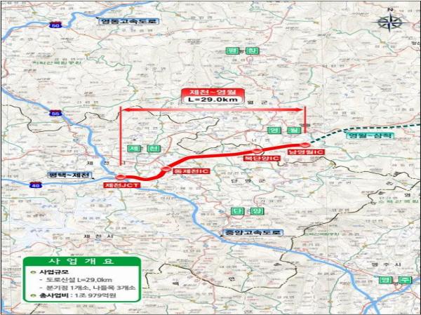 이에 따라 제천시 금성면과 강원도 영월군 영월읍을 연결하는 총 연장 29km에 총 사업비 1조 979억 원을 투입되는 사업이 추진되며, 2031년 개통을 목표로 먼저 내년부터 기본설계에 착수하게 된다.