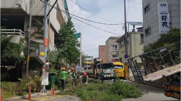 이날 작업에는 크레인 1대와 스카이 1대가 동원됐으며, 주택 주변에 생육하는 수목을 중심으로 진행됐다.