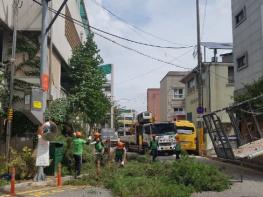 31일 신관동에 따르면, 자율방재단원 10여명은 집중호우와 태풍 등으로 지반이 약해지면서 수목이 쓰러지거나 가지 등이 부러져 인명 및 재산피해를 줄 수 있는 수목 15주를 사전에 제거했다.