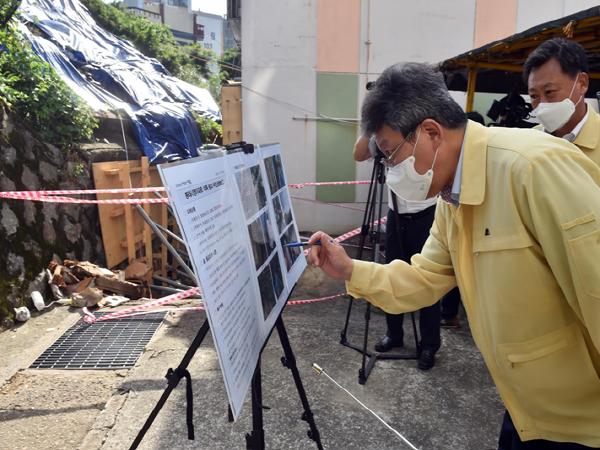 제9호 태풍 ‘마이삭’내습 시 재난을 대비하여 부산시(시장 권한대행 변성완)가 재해취약지역 현장을 방문 점검했다.