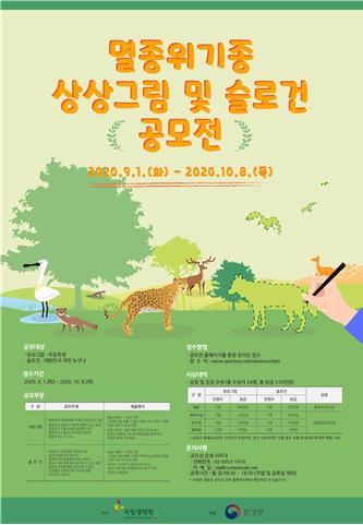환경부 산하 국립생태원(원장 박용목) 멸종위기종복원센터는 야생생물이 급격히 감소되는 현실과 야생생물 보존의 중요성을 알리기 위해 '멸종위기종 상상그림 및 슬로건 공모전'을 9월 1일부터 10월 8일까지 개최한다.