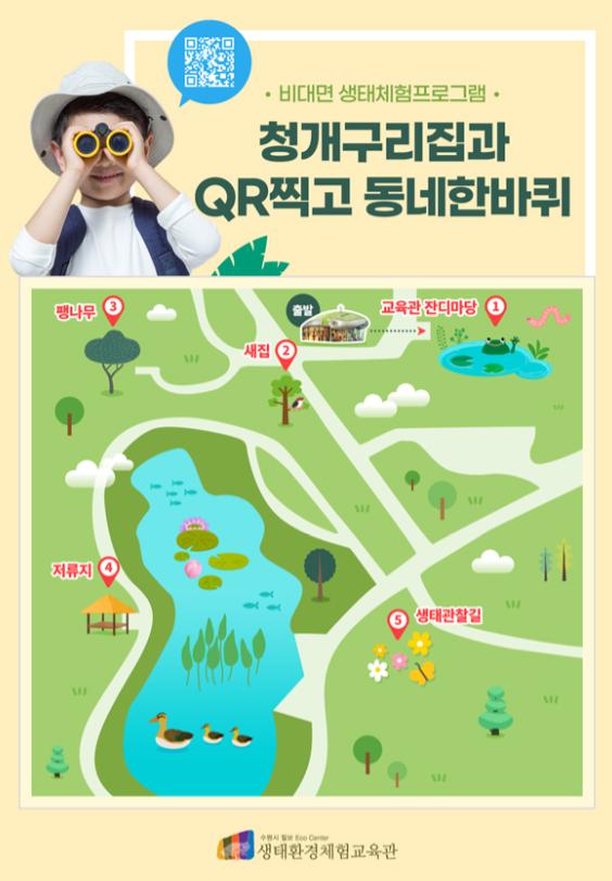 수원시 칠보생태환경체험교육관이 코로나19로 인해 체험 교육이 어려워진 시민을 위해 비대면 생태 체험 프로그램 ‘청개구리집과 QR 찍고! 동네한바퀴’를 운영한다.