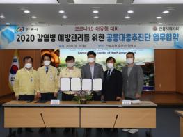 이날 협약식에서는 공동대응추진단(공동 단장 : 안동시 부시장, 안동시의사회 회장)을 구성하고 이를 통해 ? 감염병 예방 관리 및 예방접종사업 ? 선별진료소 확대 운영 시 의료인력지원 ? 자가격리자 진료 및 상담 등에 적극적으로 협력해 나가기로 했다.