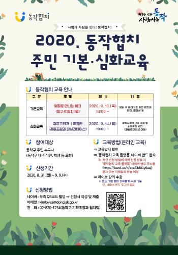 강의는 코로나19 수도권 강화된 거리두기 2단계에 따라 비대면 방식으로 진행되며, 동작협치 교육 플랫폼(https://band.us/band/79770509)으로 접속하면 수강할 수 있다.
