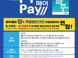 파주시는 9월부터 12월까지 지역화폐 10%특별할인기간에 할인인센티브 지급 한도를 기존 월40만원 연400만원에서 월50만원 연600만원으로 한도를 상향 발행하기로 했다.