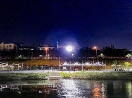 광진구(구청장 김선갑)가 야간에 중랑천을 이용하는 구민들의 안전과 편의를 위해 중랑천 물놀이장 부근 징검다리 앞에 투광등을 설치했다.