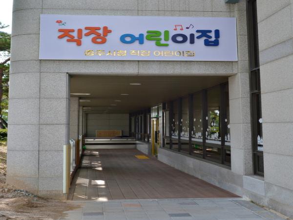 충주시청 직장어린이집은 총사업비 10억 원을 들여 기존 종합민원실이 위치한 민원동 1층의 일부 공간을 리모델링하여 연면적 665㎡에 보육실 5개, 유희실, 강당, 식당, 교사실, 원장실 등 시설을 갖췄다.