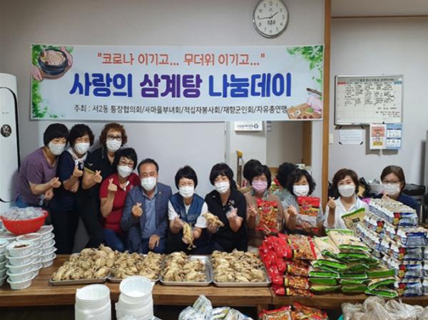 송성옥 서2동 통장연합회장은 “매년 여름 어르신을 모시고 삼계탕을 대접하곤 했는데 올해는 코로나19 예방을 위해 포장음식으로 삼계탕을 준비했다”며 “영양가득 삼계탕 한 그릇이 어르신들의 몸과 마음을 든든하게 채워주길 바란다”고 말했다.